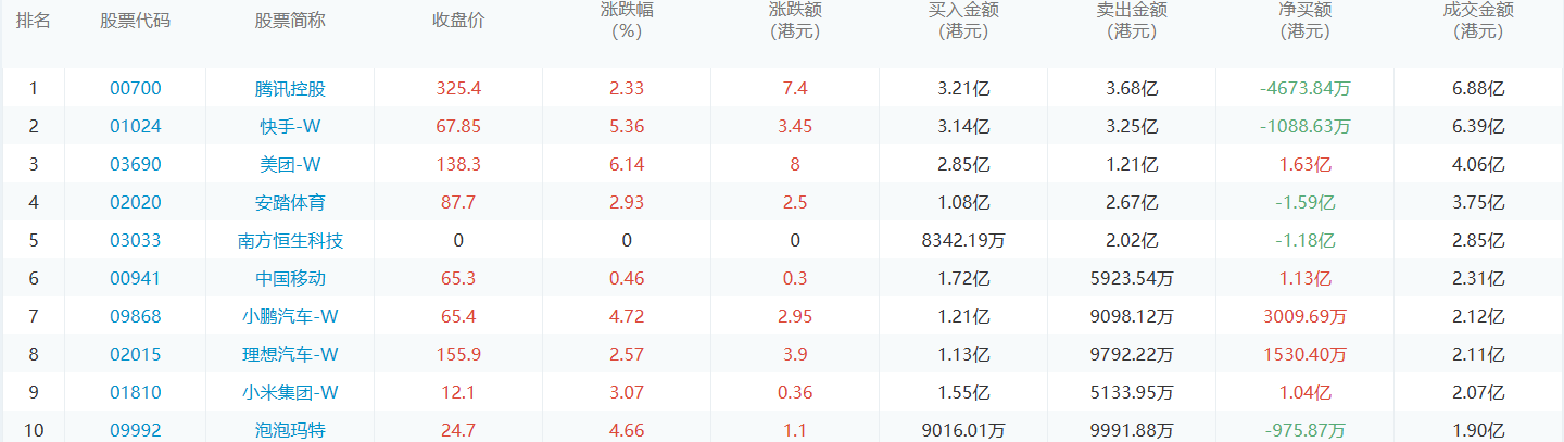 亚汇网8月24日港股通数据统计显示:腾讯控股净买入额居首,达3.21亿港元,腾讯控股净卖出额居第一位。(亚汇网编辑:静香)