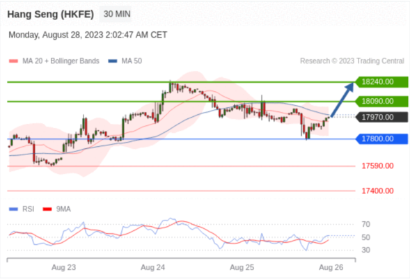 交易策略: 在 17800.00 之上,看涨,目标价位为 18090.00 ,然后为 18240.00 。