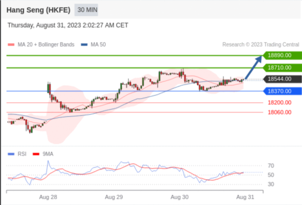交易策略: 在 18370.00 之上,看涨,目标价位为 18710.00 ,然后为 18890.00 。