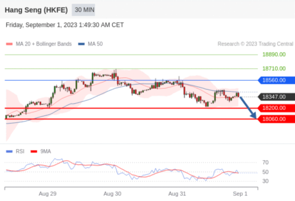交易策略: 在 18560.00 之下,看跌,目标价位为 18200.00 ,然后为 18060.00 。