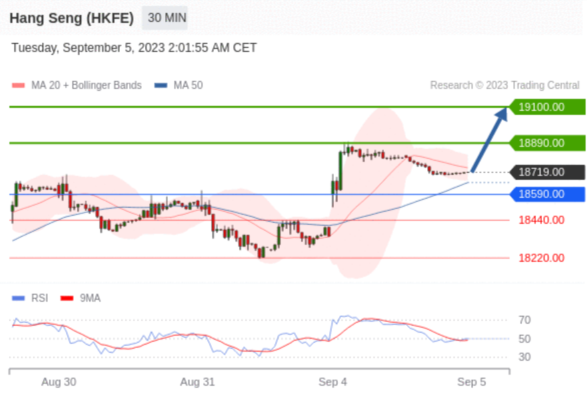 交易策略: 在 18590.00 之上,看涨,目标价位为 18890.00 ,然后为 19100.00 。