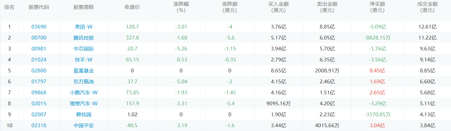 亚汇网9月5日港股通数据统计显示:美团-w净买入额居首,达5.08亿港元,腾讯控股净卖出额居第一位。(亚汇网编辑:静香)