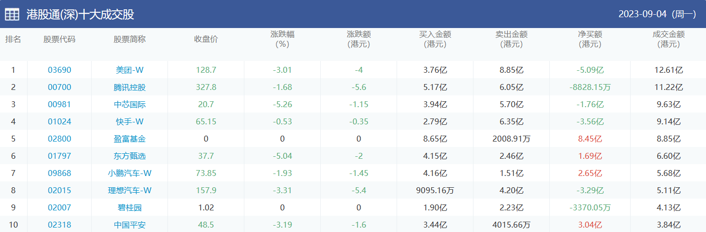 亚汇网实时数据统计:截至9月5日收盘,腾讯控股、中国海洋石油、美团-w位居港股通(沪)成交前三,美团-w、腾讯控股、中芯国际位居股通(深)成交前三。(亚汇网编辑:静香)