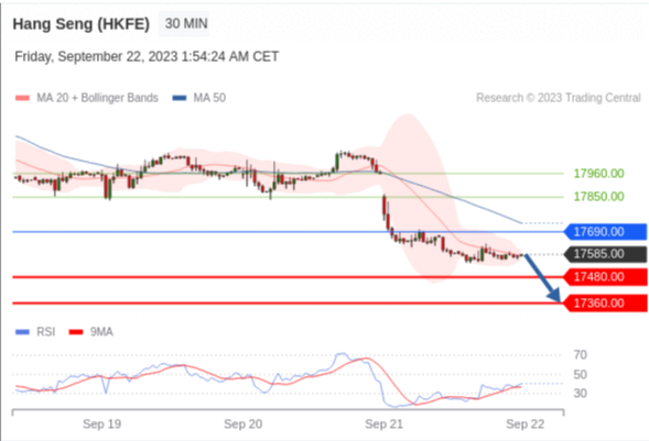 在 17690.00 之下,看跌,目标价位为 17480.00 ,然后为 17360.00 。