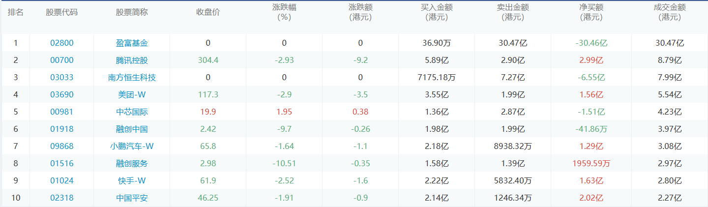 亚汇网9月25日港股通数据统计显示:腾讯控股净买入额居首,达5.89亿港元,盈富基金净卖出额居第一位。