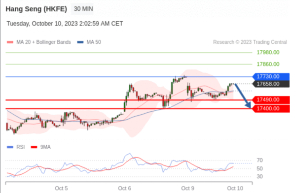 交易策略: 在 17730.00 之下,看跌,目标价位为 17490.00 ,然后为 17400.00 。