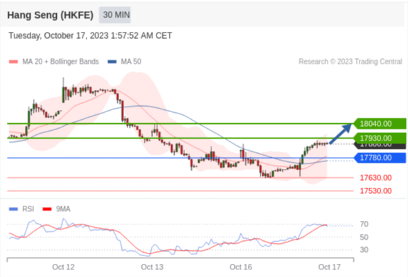 交易策略: 在 17780.00 之上,看涨,目标价位为 17930.00 ,然后为 18040.00 。