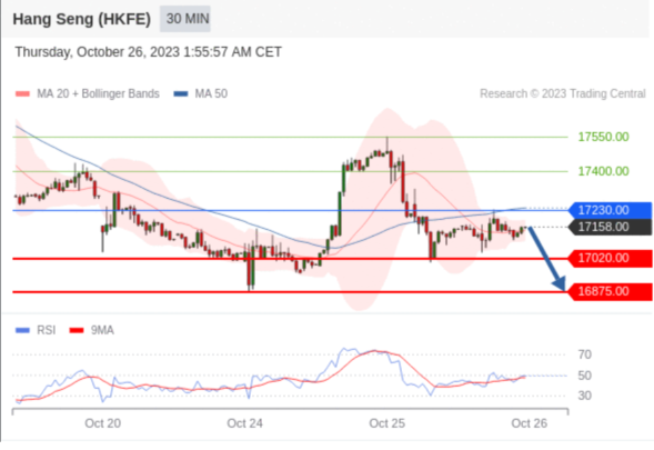 交易策略: 在 17230.00 之下,看跌,目标价位为 17020.00 ,然后为 16900.00 。