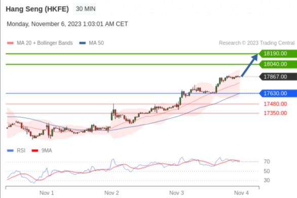 在 17630.00 之上,看涨,目标价位为 18040.00 ,然后为 18190.00 。