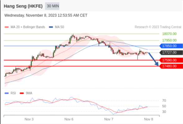 交易策略: 在 17850.00 之下,看跌,目标价位为 17590.00 ,然后为 17480.00 。