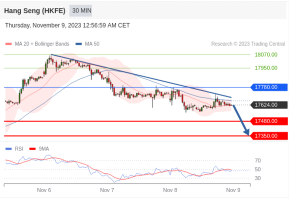 交易策略: 在 17780.00 之下,看跌,目标价位为 17480.00 ,然后为 17350.00 。