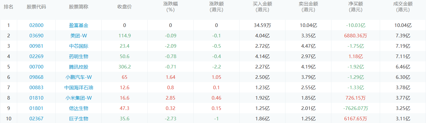 亚汇网11月8日港股通数据统计显示:药明生物净买入额居首,达4.14亿港元,腾讯控股净卖出额居第一位。