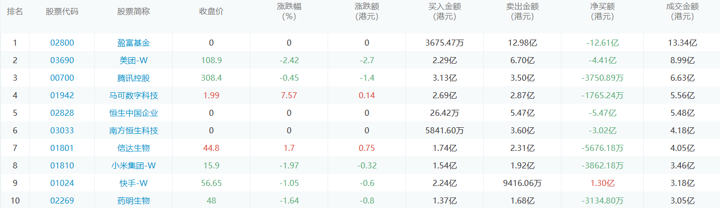 亚汇网11月14日港股通数据统计显示:腾讯控股净买入额居首,达3.13亿港元,盈富基金净卖出额居第一位。