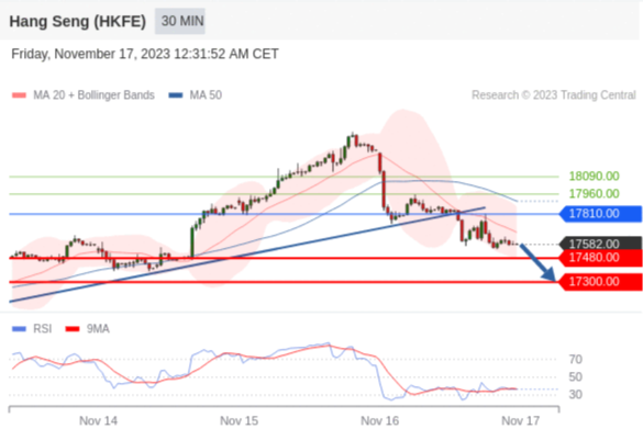 交易策略: 在 17810.00 之下,看跌,目标价位为 17480.00 ,然后为 17300.00 。