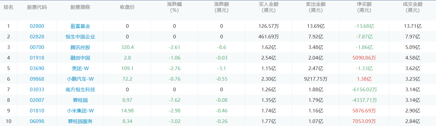 亚汇网11月24日港股通数据统计显示:融创中国净买入额居首,达2.54亿港元,盈富基金净卖出额居第一位。