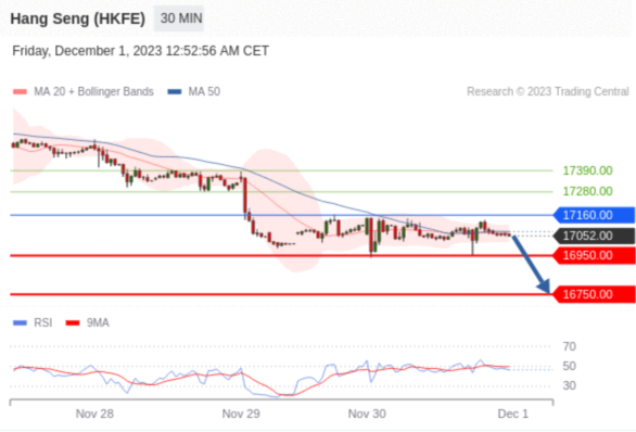 交易策略: 在 17160.00 之下,看跌,目标价位为 16950.00 ,然后为 16750.00 。