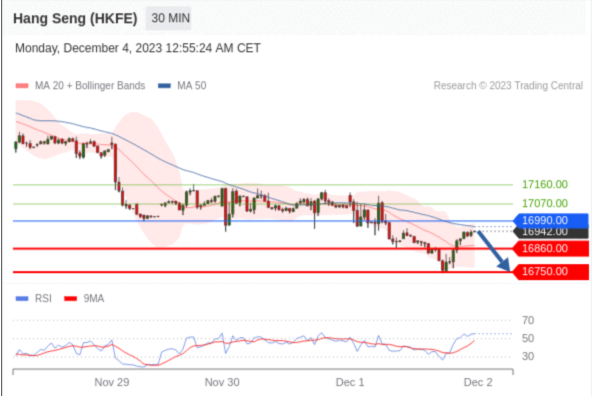 交易策略: 在 16990.00 之下,看跌,目标价位为 16860.00 ,然后为 16750.00 。