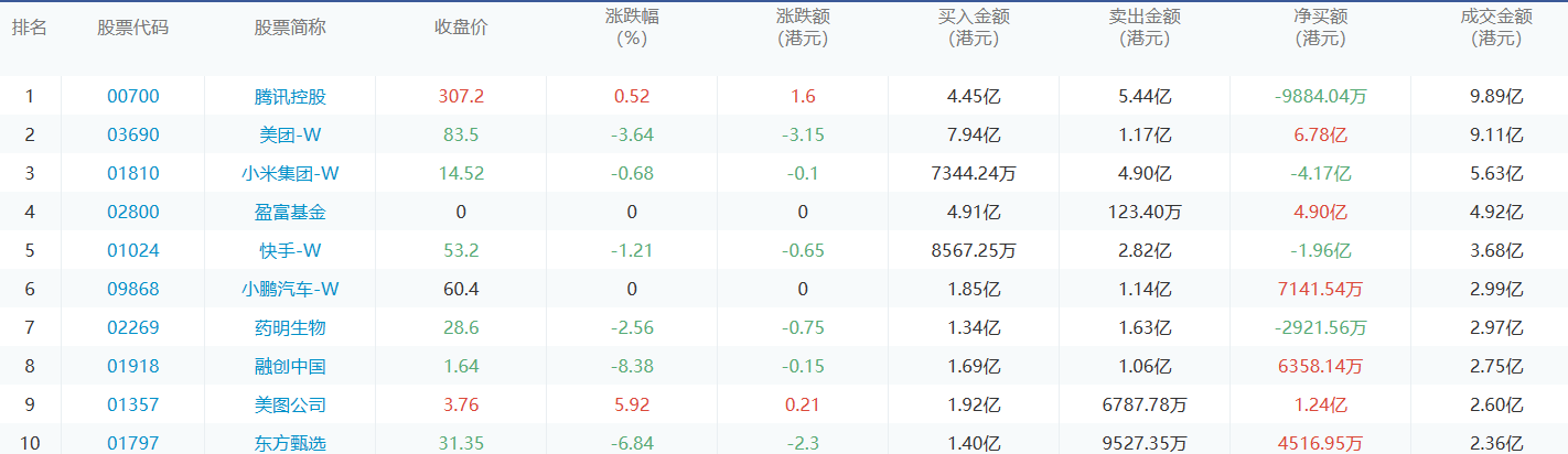 亚汇网12月11日港股通数据统计显示:美团-w净买入额居首,达7.94亿港元,腾讯控股净卖出额居第一位。