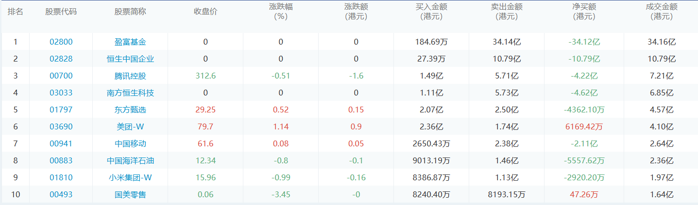 亚汇网12月21日港股通数据统计显示:美团-w净买入额居首,达2.36亿港元,盈富基金净卖出额居第一位。