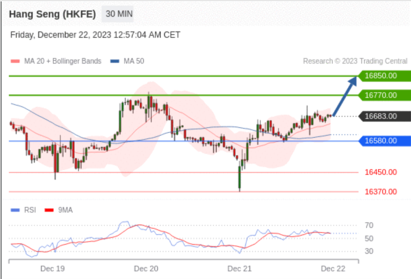 交易策略: 在 16580.00 之上,看涨,目标价位为 16770.00 ,然后为 16850.00 。