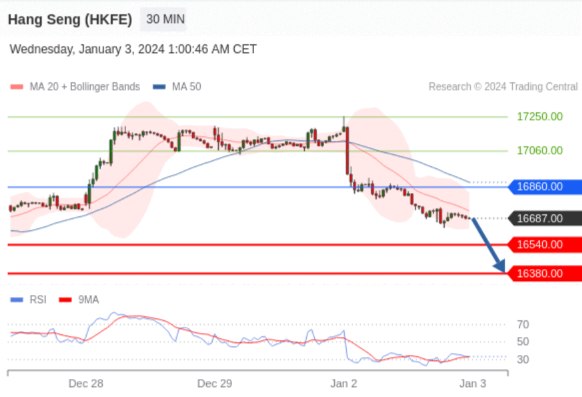 交易策略: 在 16860.00 之下,看跌,目标价位为 16540.00 ,然后为 16380.00 。