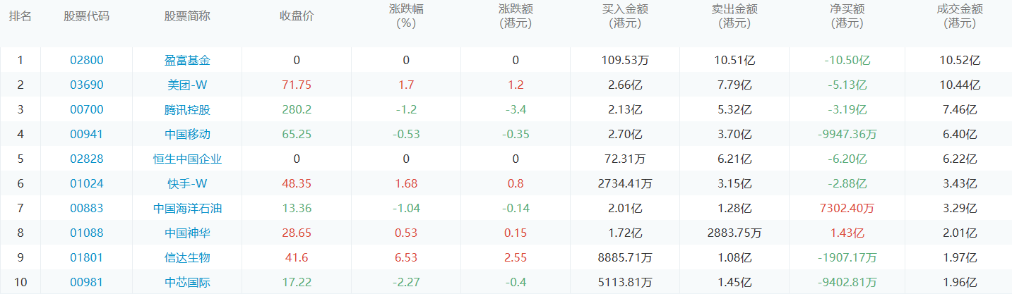 亚汇网1月10日港股通数据统计显示:中国移动净买入额居首,达2.70亿港元,盈富基金净卖出额居第一位。