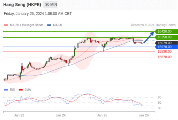 交易策略: 在 15970.00 之上,看涨,目标价位为 16250.00 ,然后为 16420.00 。
