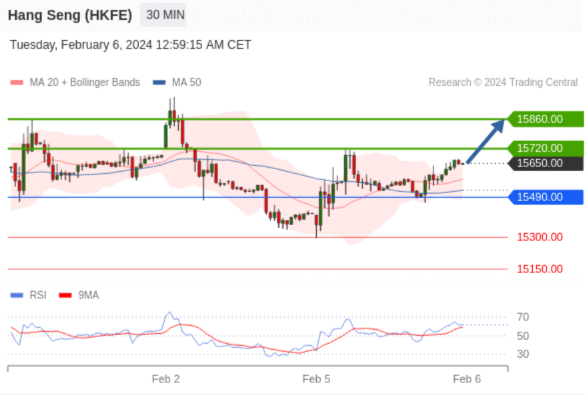 交易策略: 在 15490.00 之上,看涨,目标价位为 15720.00 ,然后为 15860.00 。