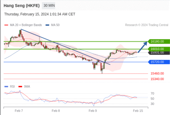 交易策略: 在 15720.00 之上,看涨,目标价位为 16010.00 ,然后为 16180.00 。