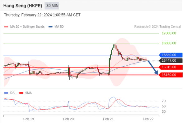 交易策略: 在 16560.00 之下,看跌,目标价位为 16315.00 ,然后为 16160.00 。
