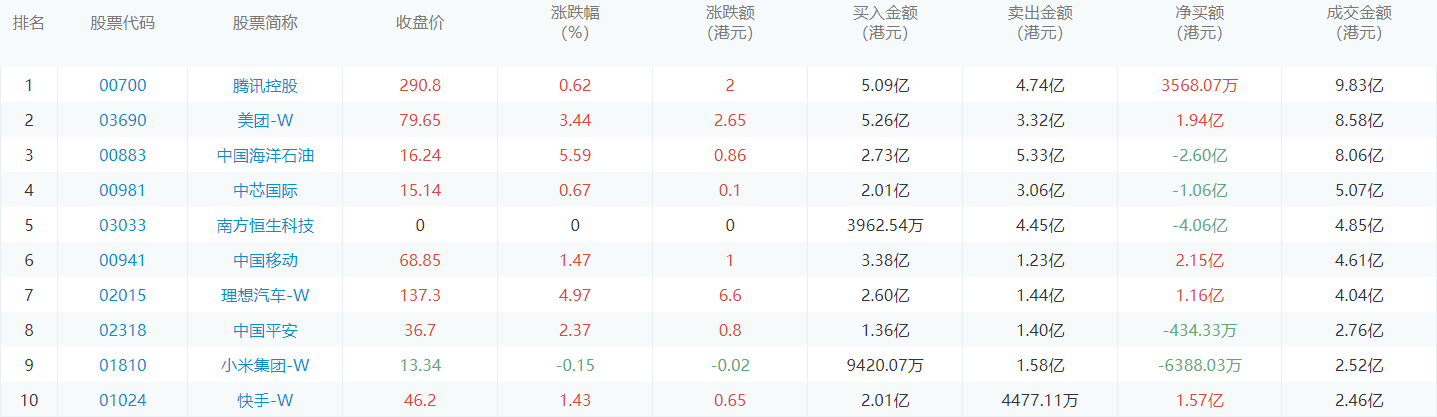 亚汇网2月22日港股通数据统计显示:美团-w净买入额居首,达5.26亿港元,中国海洋石油净卖出额居第一位。