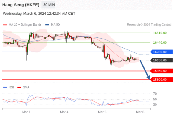 交易策略: 在 16280.00 之下,看跌,目标价位为 15950.00 ,然后为 15800.00 。