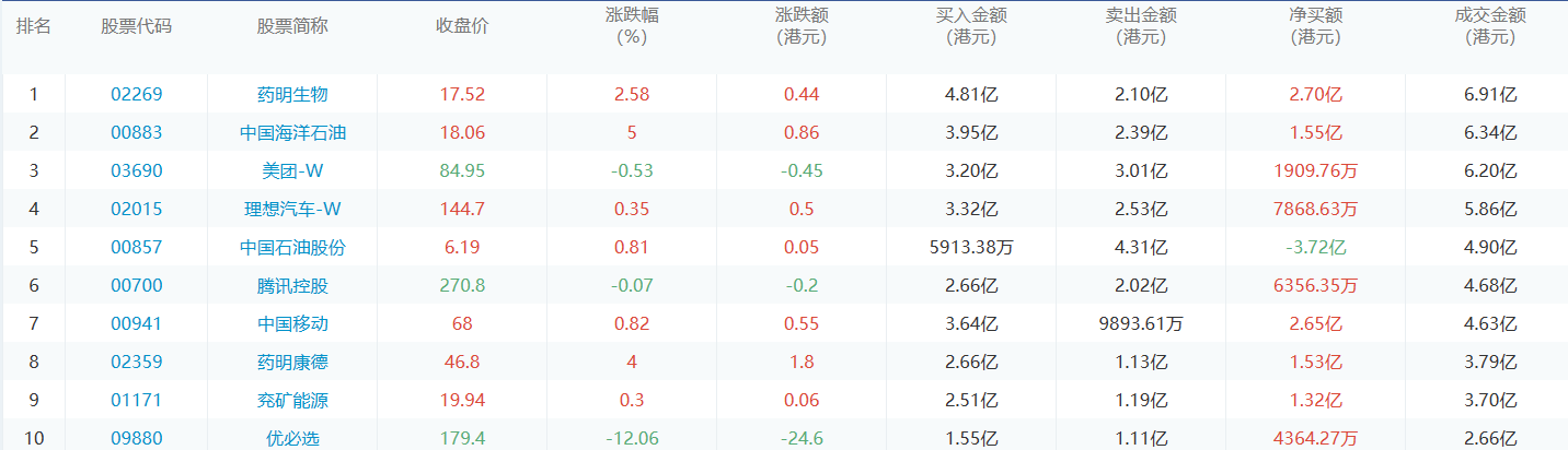 亚汇网3月8日港股通数据统计显示:药明生物净买入额居首,达4.81亿港元,中国石油股份净卖出额居第一位。