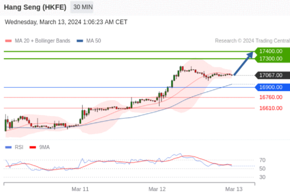 交易策略: 在 16900.00 之上,看涨,目标价位为 17300.00 ,然后为 17400.00 。