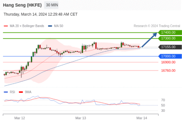 交易策略: 在 17000.00 之上,看涨,目标价位为 17300.00 ,然后为 17400.00 。