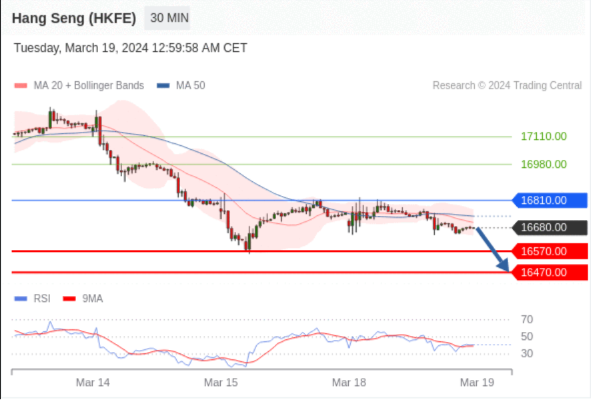 交易策略: 在 16810.00 之下,看跌,目标价位为 16570.00 ,然后为 16470.00 。