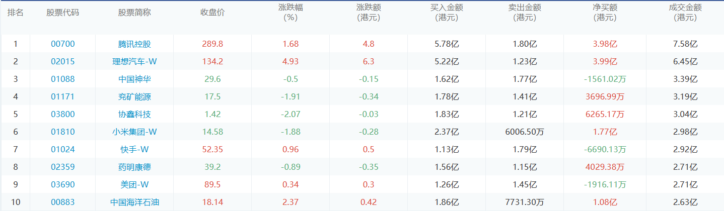 亚汇网3月20日港股通数据统计显示:腾讯控股净买入额居首,达5.78亿港元,理想汽车-w净卖出额居第一位。