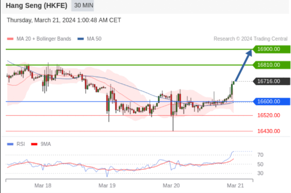交易策略: 在 16600.00 之上,看涨,目标价位为 16810.00 ,然后为 16900.00 。