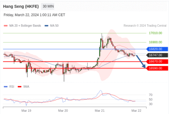 交易策略: 在 16820.00 之下,看跌,目标价位为 16670.00 ,然后为 16590.00 。