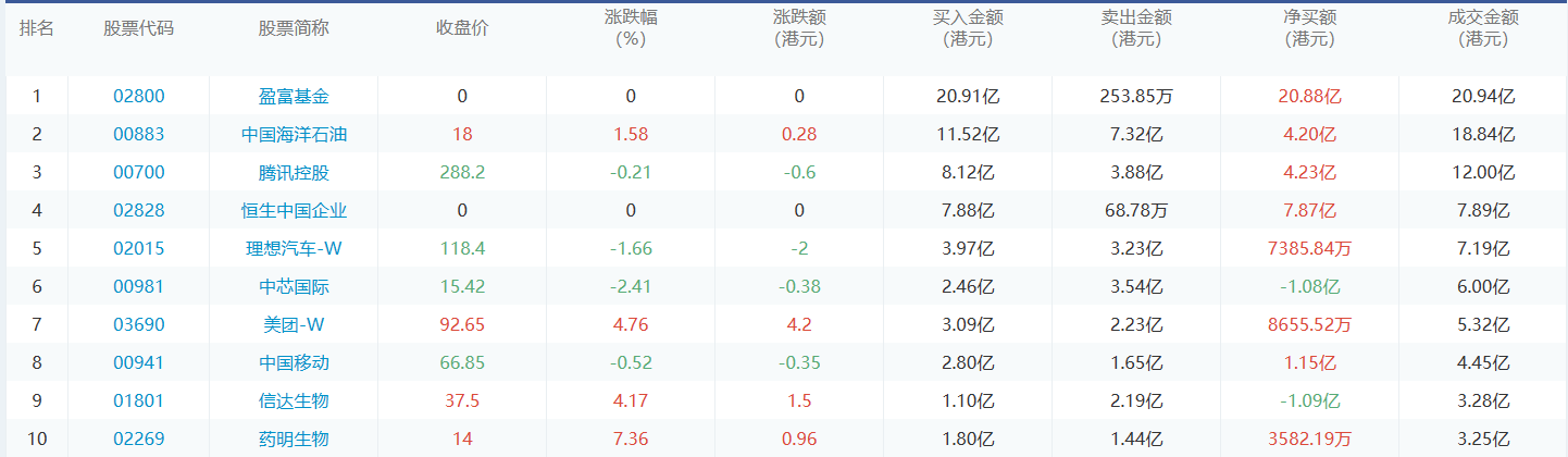 亚汇网3月25日港股通数据统计显示:盈富基金净买入额居首,达20.91亿港元,中国海洋石油净卖出额居第一位。