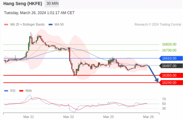 交易策略: 在 16610.00 之下,看跌,目标价位为 16350.00 ,然后为 16240.00 。