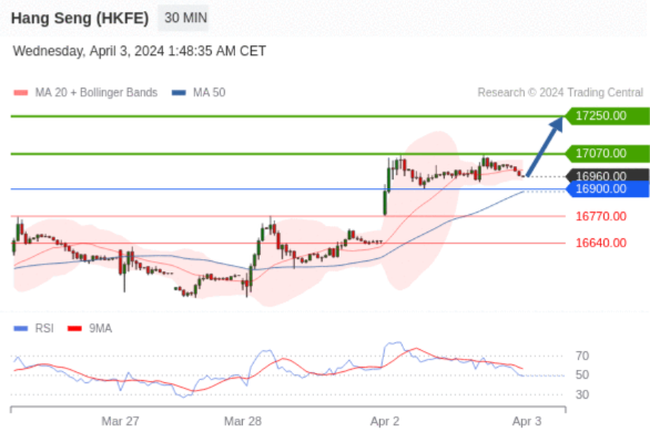 交易策略: 在 16900.00 之上,看涨,目标价位为 17070.00 ,然后为 17250.00 。