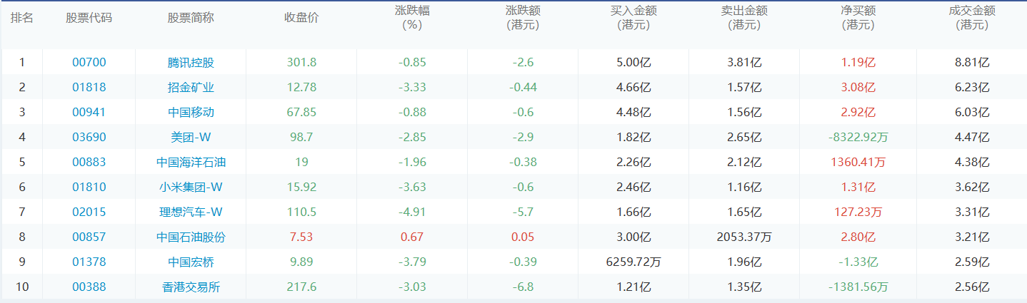 亚汇网4月16日港股通数据统计显示:腾讯控股净买入额居首,达5.00亿港元,腾讯控股净卖出额居第一位。