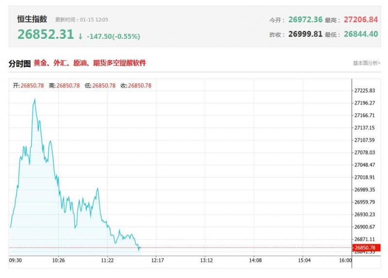 港股三大指数盘初冲高随即回落转跌,恒生科技指数跌幅相对较大,午间收跌1.83%,恒生指数、国企指数分别下跌0.55%及0.69%,三者止步4连涨行情。权重科技股多数走低,此前连续走强的阿里巴巴跌近3%;昨日大幅飙涨的AI应用相关概念股集体下跌,昨日领涨的AI医疗股跌幅较大,阿里健康跌9%。另外,三桶油拉升,中石化刷新阶段高,锂电池股继续活跃。
