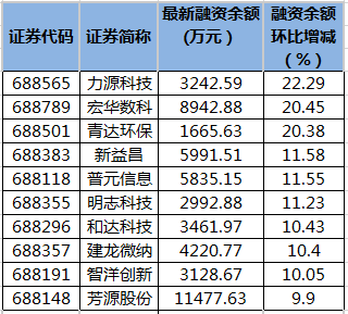统计显示,9月23日共有173只科创板个股融资余额环比增加。其中,9股融资余额增幅超过10%。融资余额增幅较大的有力源科技、宏华数科、青达环保等股。融券余额来看,160只科创板个股融券余额环比增加。融券余额增幅较大的有天准科技、宏力达、思瑞浦等。