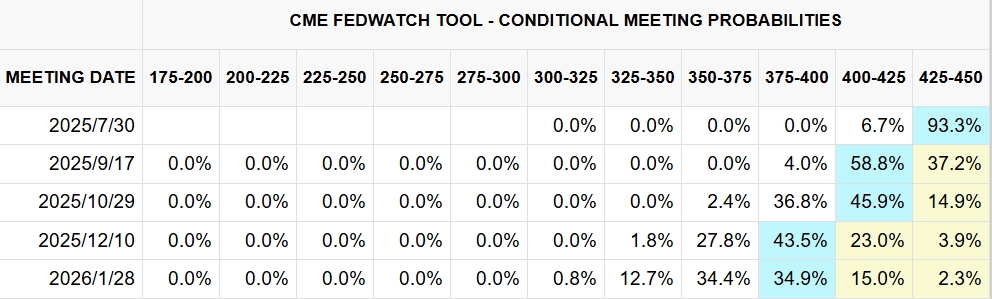 在美联储货币政策的双支柱框架中,就业市场与通胀目标始终是相互制衡的两大核心变量。2025年6月AD就业报告的发布,恰逢美联储政策转向的关键临界点。自6月FOC会议以来,美联储虽维持利率不变,但点阵图显示2025年末利率中值已下调至4.0%,隐含50个基点的降息空间。鲍威尔在国会听证会上明确表示,就业市场的“再平衡”进