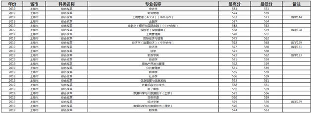 上海财经大学2019年各地高考录取分数线
