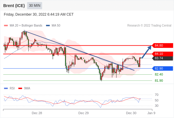 在 82.90 之上,看涨,目标价位为 84.10 ,然后为 84.80 。