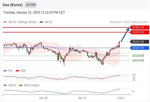 德国DAX指数期货 (Eurex)? 当日内: 看涨,当 15187.00 为支撑位。