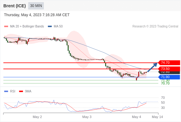 在 71.90 之上,看涨,目标价位为 73.50 ,然后为 74.70 。